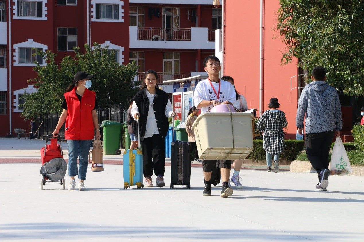 青春就如同热烈的骄阳,无论何时都洋溢着饱满的热情。迎新接待人员正在为报到的新生搬运行李,不管是来到园区报到的新生,还是负责迎新工作的学生干部,脸上都洋溢着愉悦的笑容。