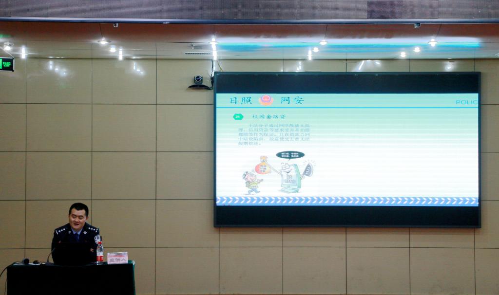 讲座伊始,王顺涛从职责、工作范围等多个方面介绍了网警,加深了同学们对网警的认识和了解。紧接着,他从四个方面说明了大学生网络信息安全常见的问题及解决方案。关于当前我国的网络安全形势,王顺涛通过图像展示了当前网络安全威胁的分布范围及个人信息泄露的大概统计,并具体介绍了当前存在的网络安全威胁。除此之外,王顺涛还详细介绍了中国七大电信诈骗基地,并全面的讲解了常见的22种网络诈骗形式,以此来提高大学生网络安全的防范能力。随后,王顺涛向同学们解释了网络谣言的含义、性质和特点,指出网络谣言具有攻击性和极大的社会危害性。他通过介绍具体的事例使同学们充分认识到网络谣言的危害,并提出了具体防范措施。最后,王顺涛就大学生如何做到安全文明上网提出建议,从安全使用智能手机、微信相关隐私功能、wifi安全、常见病毒及其防范等方面进行了详细地讲解。