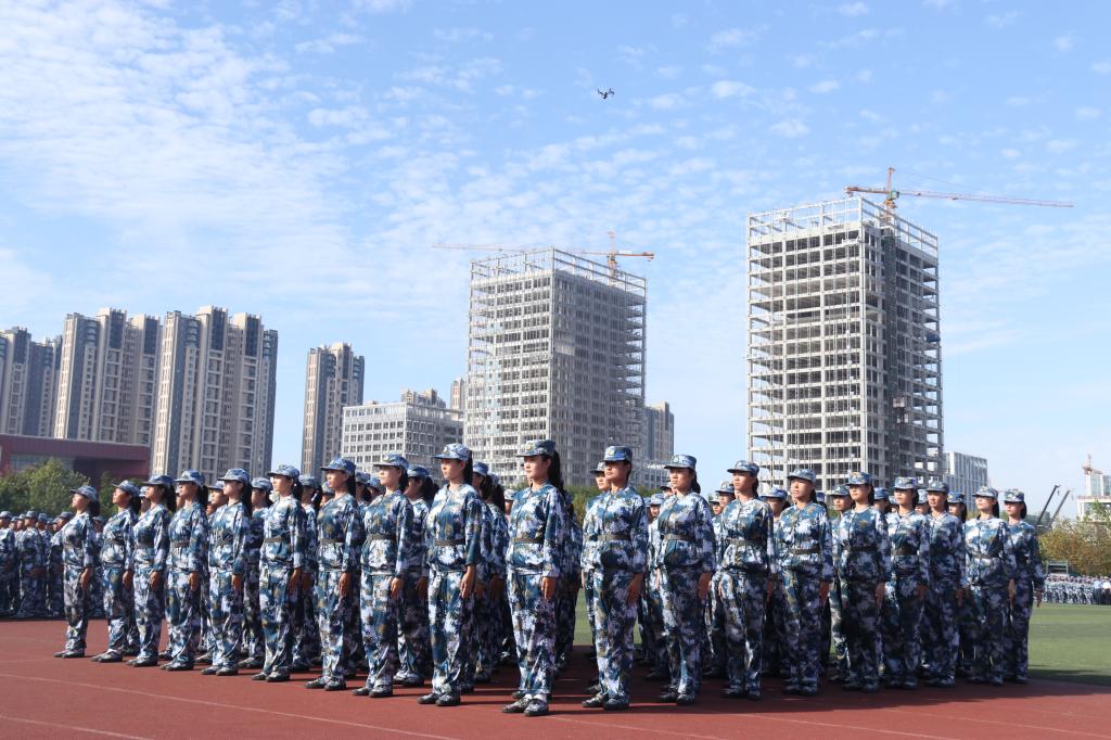 升旗仪式上,伴着庄严的国歌声,五星红旗冉冉升起。一支支方队迈着整齐的步伐接受检阅,口号清脆嘹亮,表演精彩纷呈,彰显了青春昂扬的精神面貌,激发了报效祖国的壮志豪情。摆字方队红色绸带和蓝色人海交映,朝气蓬勃;旗语方队红绿旗帜上下挥舞,动作干净利落,风格独树一帜;队列方队身姿挺拔,动作整齐划一,步伐坚定有力;心理健康操方队舞姿优美,青春洋溢;战地急救方队队形统一,技术精湛;棍术方队斗志昂扬,势如破竹,招式尽显新时代风采;内务方队整理工作有条不紊,训练有素;剑术方队身姿优美,奋发向上;擒敌拳方队气势恢宏,纪律严明,动作孔武有力;战术方队身手矫健,配合默契,令人热血沸腾。