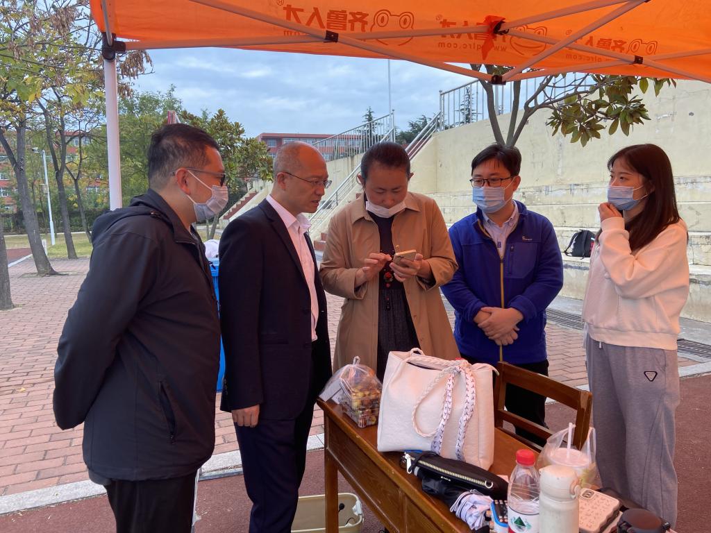 党委副书记田荣林、团委书记张守荣、全体辅导员前往传媒新生训练场地看望见习学生与志愿者。