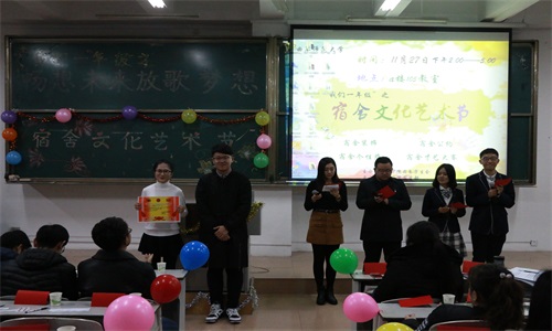 为“宿舍个性照”、“宿舍公约”、“宿舍装饰”、“宿舍才艺”获奖者颁发了奖状。宿舍文化艺术节自开幕以来,收到了传媒学子的广泛关注,各宿舍积极参与、精心准备。本次活动不仅一展传媒风采,更有利于营造温馨和谐的学习、生活环境,对增进同学间的友谊,增强宿舍凝聚力有重要作用。