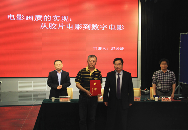 2016年5月12日下午,山东电影制片厂创作室主任、一级摄影师赵云波先生兼职教授聘任仪式暨“电影画质的实现:从胶片电影到数字电影”学术讲座在我院演播厅举行。日照校区管委会主任助理、日照校区管理办公室主任池福安出席仪式并为赵云波先生颁发兼职教授聘书。聘任仪式由幸运飞艇开奖网