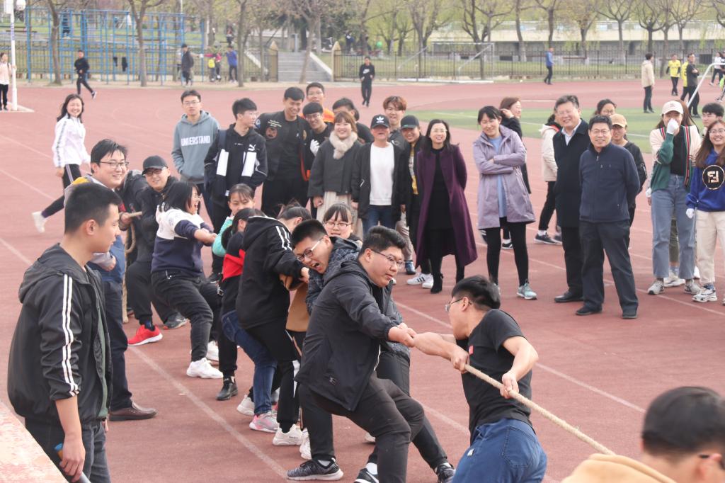鼓励同学们积极参与体育活动,并希望同学们能通过活动感受到快乐,展示当代大学生的风采。哨声吹响,拔河比赛拉开序幕,对战双方互不相让,角逐激烈,赛场氛围不断高涨。此外,跳绳、踢毽子比赛依次进行。参赛人员拼尽全力,场外观众加油呐喊,各班配合默契,推动本次启动仪式的顺利进行。