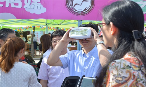以“风之传媒,梦之启航”为主题,在大本营前悬挂风车、展示航拍器和VR眼镜,校长张洪海、副校长扈庆学来视察工作并体验、观看影文中心制作的VR素材和航拍器起飞。