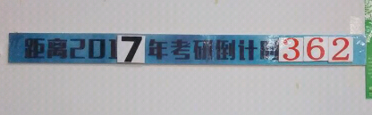 JA104教室的公告栏上就贴出了距离2017年考研362天的倒计时。此考研倒计时卡牌是学生会学习部为应届考研学子贴心特设的。学习部部长曲媛惠说道:“幸运飞艇开奖网