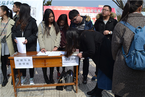 团总支副书记施蓉君,在上午来到活动报名地点了解活动进行情况。