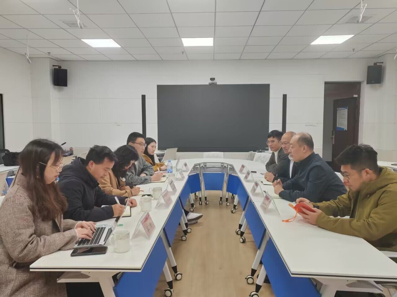 党委副书记田荣林、副院长赵可云、数字媒体技术专业教师孔勇、李海龙参与座谈。