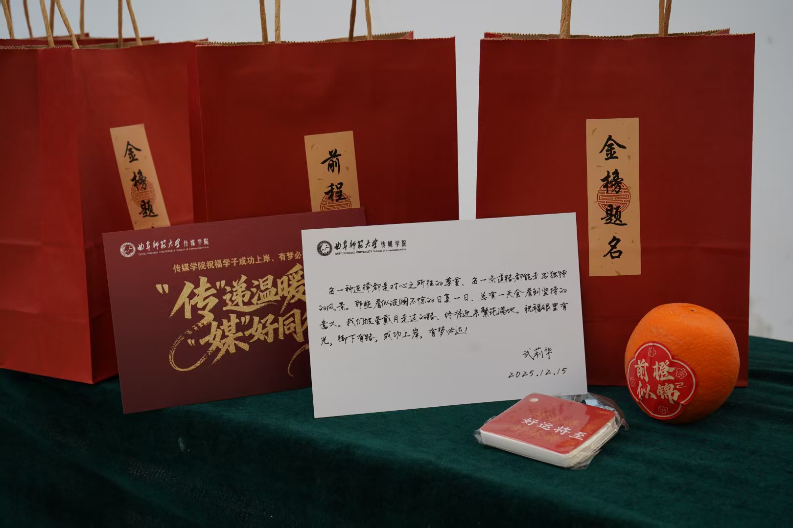 活动现场氛围温馨。印有“金榜题名”“前程似锦”字样的红色礼包格外醒目,其中不仅装有幸运飞艇开奖网